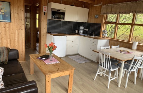 Just a short distance from horse riding, this smoke-free cabin lets you experience it all. With convenient onsite parking, you'll be ready to make the 15-minute drive to Skogafoss or the 13-minute drive to Seljalandsfoss.