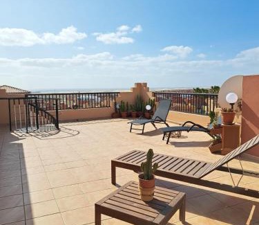 Providing barbecue facilities, Ático Estrella sunset offers accommodations in Corralejo. Among the facilities at this property are bicycle parking and a shared lounge, along with free Wifi throughout the property. Eco Museo de Alcogida is 18 miles from the apartment and Casa Museo Unamuno Fuerteventura is 19 miles away. With direct access to a balcony with garden views, the spacious apartment consists of 2 bedrooms. Offering a terrace with sea views, this apartment also features a flat-screen TV, a well-equipped kitchen with an oven, a microwave, and a toaster, as well as 1 bathroom with a shower and a hair dryer. The property has an outdoor dining area. Guests at the apartment will be able to enjoy activities in and around Corralejo, like cycling. Fuerteventura Golf Club is 28 miles from Ático Estrella sunset. Fuerteventura Airport is 21 miles from the property.