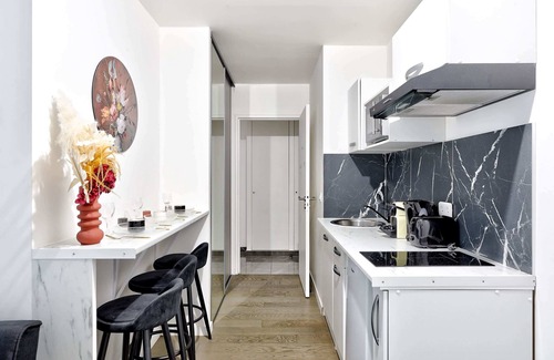 Cet appartement, pouvant accueillir jusqu'à 3 personnes, vous offrira une expérience alliant confort et modernité et c'est sans doutes l'endroit parfait pour profiter pleinement de votre séjour à Paris.