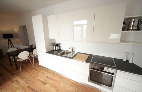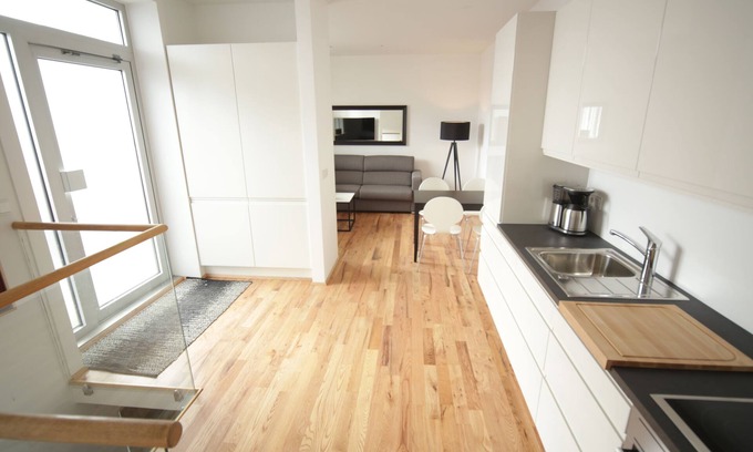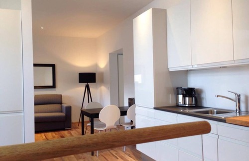 This beautiful apartment has just been remodeled in a very modern and stylish way. Located in a quiet residential area but still near the city center. The apartment fits up to 6 guests with a dining area and functional kitchen.
