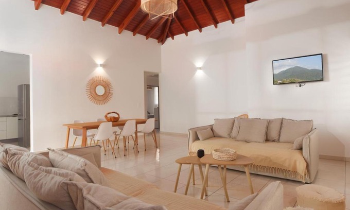 Offering a terrace, Ô'Bèl Ter offers accommodations in Pointe-Noire. Both free Wifi and parking on-site are available at the apartment free of charge. Guests can use barbecue facilities. Ô'Bèl Ter features 3 bedrooms, a fully equipped kitchen with a dishwasher and an oven, a washing machine, and 2 bathrooms with a hair dryer. Towels and bed linen are featured in the apartment. The accommodation is non-smoking. Diving, fishing, and hiking are possible within the area, and the accommodation offers water sports facilities. Caraibe Beach is 1.3 miles from Ô'Bèl Ter. Pointe-à-Pitre Le Raizet Airport is 25 miles away.