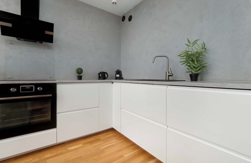 The apartment at Tymienieckiego Street in Lodz is a stylishly decorated space that will be perfect for both business trips and tourist stays. The apartment is located on the 3rd floor of a prestigious building with an elevator and offers a modern layout: a bedroom with a comfortable double bed, a spacious living room with a sofa bed for two people and a kitchenette combined with a dining area. The interior of the apartment is characterized by functionality and elegant finishing, with the comfort of even the most demanding guests in mind. Neutral colors and carefully selected accessories create a calm, relaxing atmosphere. The kitchen is equipped with high-quality appliances - induction hob, oven, dishwasher, refrigerator with freezer and coffee maker, which allows you to prepare your own meals in a homely style. The bathroom has a modern shower, hairdryer and soft towels. Guests can enjoy high-speed Wi-Fi and a Smart TV. A work desk is provided for those working remotely. The apartment is not air-conditioned, but is equipped with a portable air conditioner. A parking space in the underground garage is available for the price of your stay, which is an important perk for those traveling by car.