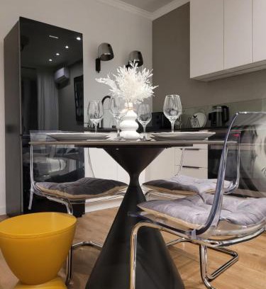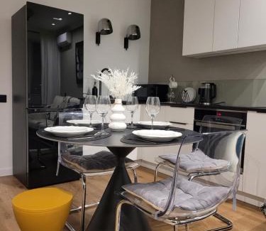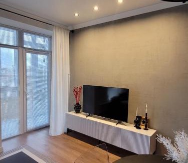 Food & DrinkTea/Coffee makerBathroomToilet paper, Shampoo, Body soap, Slippers, Bidet, Walk-in shower, Conditioner, Toothbrush, Hairdryer, Toilet, Private bathroom, Free toiletries, Bathtub or shower, Towels, ShowerMedia & TechnologyTV, Flat-screen TVGeneralAir conditioning, Key access, Key card access, Heating, Iron, Private entrance, Fan, Mosquito net, Trash cans, Ironing facilitiesKitchenOven, Kitchen, Refrigerator, Washing machine, Microwave, Kitchenware, Kitchenette, Dining table, Wine glasses, Stovetop, Electric kettle, Cleaning productsOutdoorsBalconyLiving AreaDesk, Sitting area, Dining area, SofaViewCity view, View, Quiet street viewBedroomWardrobe or closet, LinensAccessibilityShower chair, Entire unit located on ground floorBuilding CharacteristicsPrivate apartment in buildingRoom AmenitiesSofa bed, Non-feather pillow, Socket near the bed, Drying rack for clothing, Clothes rackPhysical distancingSingle-room AC for guest accommodation |