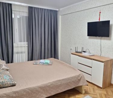 Providing an open-air bath, Квартира features accommodations in Balqash. Both free Wifi and parking on-site are available at the apartment free of charge. The accommodation offers room service and a mini-market for guests. The apartment is composed of 1 bedroom, a fully equipped kitchen, and 1 bathroom. A flat-screen TV is featured. The accommodation is non-smoking. For guests with children, Квартира provides outdoor play equipment. A bicycle rental service and a private beach area are provided at the accommodation.