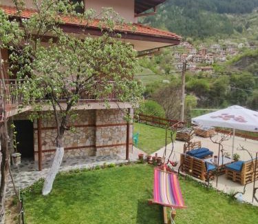 Providing quiet street views, Къща за гости Гаджакови in Devin provides accommodations, a garden, and a shared lounge. This property offers access to a terrace, free private parking, and free Wifi. Guests can make use of the outdoor fireplace or the picnic area, or enjoy views of the city and inner courtyard. Overlooking the mountain, rooms in this guest house are accessible via private entrance and fitted with a flat-screen TV and a private bathroom with a walk-in shower and slippers. A balcony with an outdoor dining area and garden views is offered in every unit. At the guest house, all units have bed linen and towels. There is an on-site coffee shop, and during warmer months you can make use of the barbecue facilities. Yagodinska Cave is 10 miles from the guest house, while Devil's Throat Cave is 12 miles away. Plovdiv International Airport is 64 miles from the property.