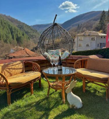 Offering a garden, Къща за гости Хаджиевата къща provides accommodations in Smolyan. Guests can benefit from a balcony and a children's playground. The villa features parking on-site, a sauna, and a shared kitchen. With free Wifi, this 5-bedroom villa offers a flat-screen TV, a washing machine, and a fully equipped kitchen with a dishwasher and microwave. Guests can take in the views of the garden from the terrace, which also has outdoor furniture. There's also a seating area and a fireplace. The villa has a picnic area where you can spend the day outdoors. Zlatograd Municipality Square is 28 miles from the villa, while Chapel of St. Athanasius is 29 miles away. Plovdiv International Airport is 56 miles from the property.