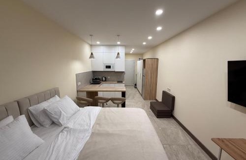 Роскошные апартаменты с видом на море в Цихисдзири на берегу лучшего пляжа Грузии is located in Ts'ikhisdziri, just 2.8 miles from Kobuleti Train Station and 13 miles from Batumi Train Station. The air-conditioned accommodation is a 12-minute walk from Petra Fortress. Free Wifi is available throughout the property and Bobokvati Beach is a few steps away. Offering a balcony with sea views, this apartment also has a flat-screen TV, a well-equipped kitchen with a dishwasher, a microwave, and a fridge, as well as 1 bathroom with a bath and a hair dryer. The accommodation is non-smoking. There is an on-site bar. Guests can enjoy the outdoor swimming pool at the apartment. Ali and Nino Monument is 14 miles from Роскошные апартаменты с видом на море в Цихисдзири на берегу лучшего пляжа Грузии, while Gonio Fortress is 21 miles away. Batumi International Airport is 17 miles from the property.