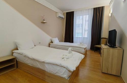 Located in Vratsa, 10 miles from Ledenika Cave, Хотел Приятели features views of the mountain. With a restaurant, the 1-star hotel has air-conditioned rooms with free WiFi, each with a private bathroom. The hotel has family rooms. At the hotel, every room comes with a desk. The rooms are equipped with a flat-screen TV, and some rooms at Хотел Приятели have a city view. All rooms feature a closet. Seven Altars Monastery is 27 miles from the accommodation. Sofia Airport is 66 miles from the property, and the property offers a paid airport shuttle service.