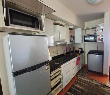 Featuring a garden, العلمين features accommodations in El Alamein. This property offers access to a terrace and free private parking. The air-conditioned apartment consists of 1 bedroom, a fully equipped kitchen, and 2 bathrooms. A flat-screen TV is available. There is an on-site bar. Porto Marina is 8 miles from the apartment. El Alamein International Airport is 42 miles from the property.