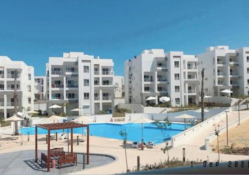 One mile from Safi Beach in El Alamein, شاليه دور أول بأسانسير في زون راحة وأناقة صيفية features accommodations with access to a sauna and hot tub. This property offers a private pool and free private parking. The chalet is also equipped with a garden, an indoor pool, and a terrace where guests can relax. With free Wifi, this 2-bedroom chalet provides a flat-screen TV, a washing machine, and a fully equipped kitchen with a minibar. There is an on-site bar. Porto Marina is 21 miles from the chalet. El Alamein International Airport is 20 miles away.