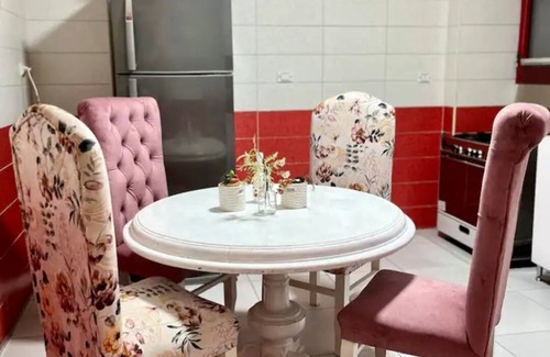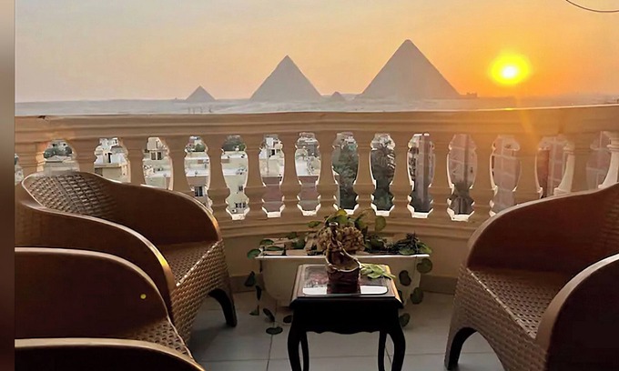 A completely private apartment for you overlooking the pyramids directly without any barriers. It contains two closed rooms, a room with one large bed, and a room with two medium beds, containing all basic electrical appliances, fully air-conditioned, and 2 balconies overlooking the pyramids and the Sphinx. It contains a dining room with a kitchen, 8 dining chairs, a large salon and a dining room. It is the most amazing sight you can see if you are looking for the pyramids and amenities