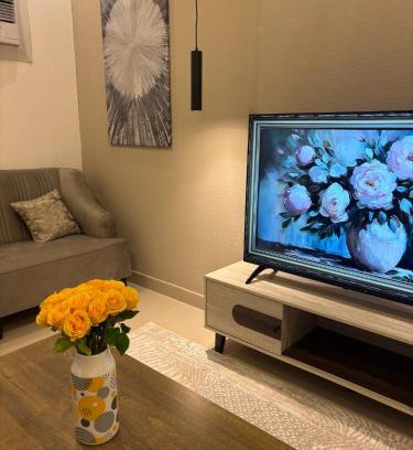 غرفتين وصاله هادئه offers accommodations in Quai, 3 miles from Buraydah Museum and 3.1 miles from King Khalid Garden Park. Guests staying at this apartment have access to a fully equipped kitchen. The apartment also offers free Wifi and free private parking. The air-conditioned apartment consists of 2 separate bedrooms, 1 bathroom with bathrobes, a seating area, and 2 living rooms. A flat-screen TV with streaming services is featured. The accommodation is non-smoking. Al Aqelat Garden Park is 3.4 miles from the apartment, while Al Hukeer Amusement is 4.4 miles away. Prince Naif bin Abdulaziz International Airport is 16 miles from the property.