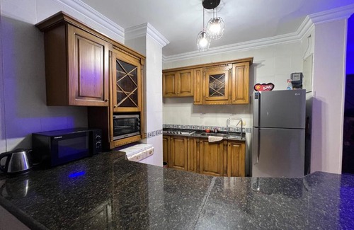 Featuring air-conditioned accommodation with a terrace, قريه لالونا بيتش الزعفرانه is located in Ain Sokhna. This apartment features a garden and free private parking. This apartment comes with 2 bedrooms, a kitchen with a fridge and an oven, a flat-screen TV, a seating area and 2 bathrooms equipped with a bath or shower.