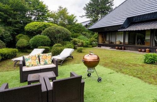Food & DrinkTea/Coffee maker, Minibar, Wine/Champagne, Bottle of waterBathroomShower, Bathtub, Hairdryer, Free toiletries, Toilet, Private Bathroom, Slippers, Bathtub or shower, Bidet, Towels, Toilet paper, Toothbrush, Shampoo, Conditioner, Body soapGeneralSafe, Air conditioning, Iron, Ironing facilities, Fan, Heating, Private entrance, Hardwood or parquet floors, Trash cans, Smoke Alarm, Fire extinguisher, Key access, Carbon monoxide detectorMedia & TechnologyTV, DVD player, Cable channels, Flat-screen TVActivitiesHot tubKitchenRefrigerator, Microwave, Washing machine, Kitchen, Electric kettle, Kitchenware, Dryer, Oven, Stovetop, Toaster, Cleaning products, Coffee machine, Dining table, Wine glassesLiving AreaDesk, Sitting area, Sofa, Dining areaBedroomWalk-in closet, Wardrobe or closet, LinensViewView, Garden view, Mountain view, Quiet street viewOutdoorsBarbecue, Terrace, Outdoor furniture, Outdoor dining areaAccessibilityEntire unit located on ground floorRoom AmenitiesClothes rack, Drying rack for clothing, Socket near the bed, Adapter, Non-feather pillow, Tatami (traditional Japanese flooring)Entertainment & Family ServicesBoard games/puzzles, Books, DVDs or music for childrenSafety featuresAir purifiersCleanliness & disinfectionHand sanitizer |