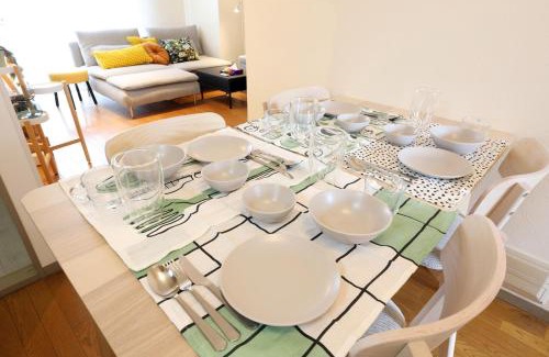BathroomBathtub, Toilet, Bidet, Slippers, Toilet paper, Private bathroom, Body soap, Hairdryer, Towels, Shower, Conditioner, Bathtub or shower, ShampooGeneralTrash cans, Iron, Fire extinguisher, Heating, Smoke Alarm, Ironing facilities, Air conditioningKitchenWashing machine, Refrigerator, Wine glasses, Microwave, Toaster, Kitchen, Stovetop, Electric kettle, Kitchenware, Dining table, Cleaning productsMedia & TechnologyFlat-screen TVLiving AreaDining area, SofaBedroomLinens, Wardrobe or closetAccessibilityEntire unit located on ground floorBuilding CharacteristicsPrivate apartment in buildingRoom AmenitiesSocket near the bed, Clothes rack, Drying rack for clothing, Non-feather pillow |
