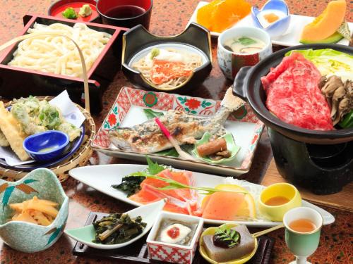 GeneralTrash cans, Smoke Alarm, Air conditioning, HeatingKitchenElectric kettle, RefrigeratorBathroomBathtub or shower, Slippers, Toilet, Body soap, Bidet, Toothbrush, Towels, Toilet paper, Private bathroom, ShampooMedia & TechnologyFlat-screen TVViewMountain viewRoom AmenitiesYukata, Non-feather pillow, Tatami (traditional Japanese flooring) |