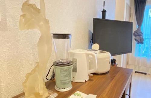 BathroomBathtub or shower, Body soap, Private bathroom, Shower, Toilet paper, Conditioner, Free toiletries, Shampoo, Hairdryer, Slippers, Bidet, Toothbrush, Toilet, Guest bathroom, BathtubMedia & TechnologyFax, Flat-screen TVGeneralTrash cans, Carpeted, Air conditioning, Iron, HeatingOutdoorsTerrace, BalconyKitchenWashing machine, Kitchen, Cleaning productsLiving AreaSofaViewViewBedroomWardrobe or closetBuilding CharacteristicsDetachedRoom AmenitiesClothes rack, Drying rack for clothing, Hypoallergenic pillow, Tatami (traditional Japanese flooring), Sofa bed, Non-feather pillow, Socket near the bed, PajamasPhysical distancingSingle-room AC for guest accommodationCleanliness & disinfectionHand sanitizer |