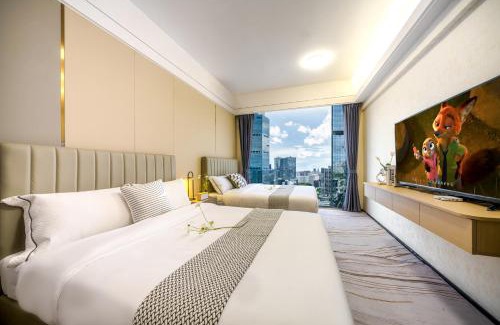 Located in Shenzhen, 2.7 miles from Shenzhen Convention & Exhibition Centre, 榆漫居高空城景酒店-深圳福田会展中心皇岗口岸下沙地铁站KKone店 features views of the city. The property is around 3.3 miles from Civic Center Station, 3.4 miles from Shenzhen Civic Center and 4.1 miles from He Xiangning Art Museum. The property provides room service and a 24-hour front desk for guests. At the hotel, rooms are equipped with a closet. Each room includes air conditioning, a desk and a flat-screen TV, and certain rooms at 榆漫居高空城景酒店-深圳福田会展中心皇岗口岸下沙地铁站KKone店 have a balcony. Guest rooms will provide guests with a fridge. Happy Valley Theme Park is 4.3 miles from the accommodation, while Shenzhen Stadium is 6.2 miles away. Shenzhen Bao'an International Airport is 17 miles from the property.