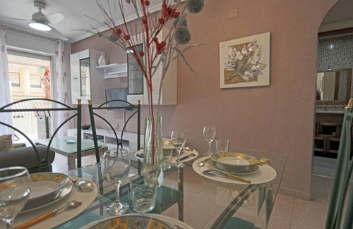 Nice 2 bedroom apartment in quiet area between the Salinas and Gran Playa in Santa Pola. It has air conditioning in living room and a covered balcony with west orientation and independent kitchen. Less than 500m from \"Gran Playa\" and the shopping area in Santa Pola. Fully equipped for a vacation near the sea, ideal for families of 4 people. Tourist license number VT-488897-A.
