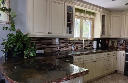 NOTE: we have a travel trailer near our garden so are easily accessible during your stay, but far enough away for your privacy and ours. If you see us going into the basement (our private area - as you have the entire one floor home) it is to get a tool, grab something from the freezer, etc.
