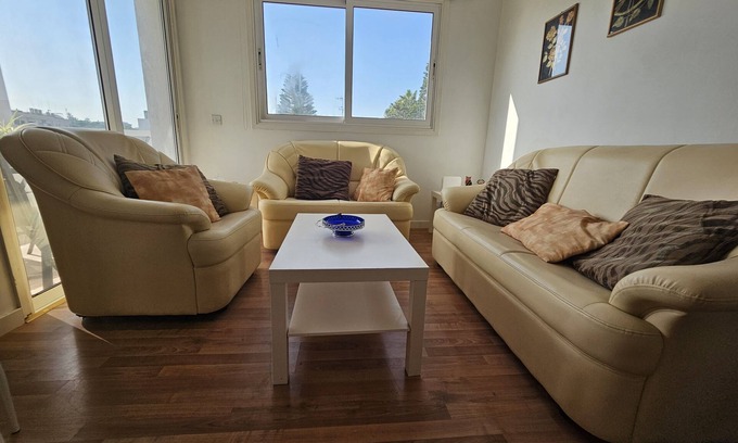 1-BDR in Aglantzia, Nicosia is located in Aglantzia. 1-BDR in Aglantzia, Nicosia provides accommodation, featuring Wheelchair Accessible, Child Friendly, Hot Tub, among other amenities. This Apartment features Wheelchair Accessible, Child Friendly, Hot Tub, to make your stay a comfortable one.