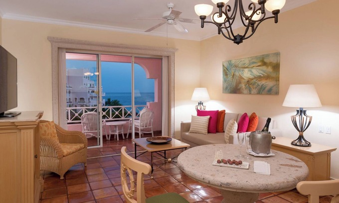 Welcome to this charming condo at the ocean front Pueblo Bonito Rose resort in Cabo San Lucas. Unit 2003 is available for the week of Nov. 24 to Dec. 01. It features 1 bedroom with 2 full beds, 2 bathrooms,and an additional living room with a cozy sofa bed for a total of 6 guests. A small kitchen, and an outdoor patio that spans both living room and bedroom and provides a direct ocean, beach and Lands End view. Guests can enjoy full resort amenities such as restaurants, bars, spa, and concierge. Close to downtown Cabo San Lucas (15 min walk)