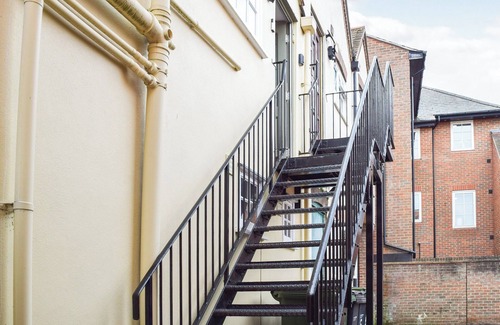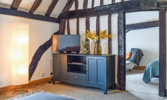 Hive Mews is a Grade II listed, beamed first floor apartment nestled in the heart of the historic market town on Abingdon on Thames. A perfect couples’ getaway or getaway to relax in comfortable surroundings.. External open tread stairs to entrance.