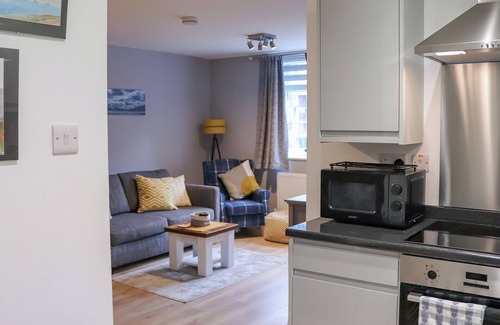 Shower Room: Cubicle Shower, Heated Towel Rail, Toilet. Gas central heating, electricity, bed linen, towels and Wi-Fi included. Travel cot. Enclosed rear sitting-out area with garden furniture and firepit. Bike/kayak/paddle board store. On road parking. No smoking.. Welcome to this modern, ground floor apartment nestled in the heart of Bala, where comfort meets convenience. As you step inside, you’re greeted by a charming cottage ambiance, perfect for a relaxing getaway. The open-plan layout seamlessly integrates the living area with a well-equipped kitchen, creating a warm and inviting space for socialising in and cooking up delicious meals. The apartment features one bedroom, with modern furnishings and snug bedding, offering a peaceful retreat. Additionally, a comfortable sofa bed in the living area provides sleeping arrangements for an extra guest, ensuring everyone can unwind in comfort. There is also a modern bathroom with quality shower where you can rejuvinate.