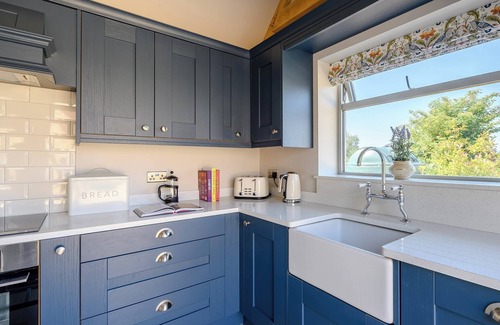 The property is set over two floors with a bright and spacious living area which has a Freeview Smart TV and two sofas, one of which is a double sofa bed that can accommodate an additional two guests. The kitchen and dining area is well equipped with an electric oven, induction hob, dishwasher, washer/ dryer, built-in microwave, fridge freezer, quartz worktops, a butler style sink and a table and chairs. The shower room leads off the living area and is fitted with a shower cubicle, heated towel rail, toilet and wash basin.