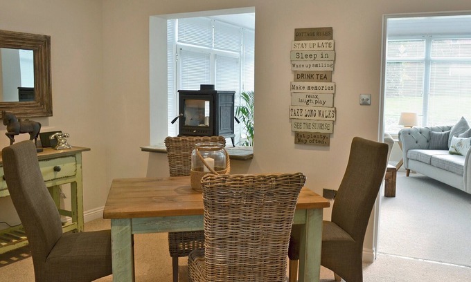 Living area: 50" Freeview TV, DVD Player, Ipod Dock, Woodburner, French Doors Leading To Patio