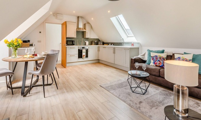 A fabulous first floor coach house apartment with far reaching views, a perfect base to explore the area from.. 4 steps to entrance.