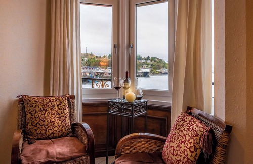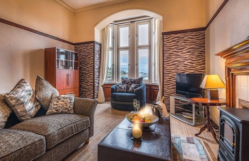 Bathroom: Bath With Shower Over, Toilet. Electric heaters, electricity, bed linen, towels and Wi-Fi included. Private parking for 1 car. No smoking. . Enjoying a central location and wonderful unsurpassed views across the waters of Oban Bay, this first floor holiday apartment, with fine Victorian features, makes an ideal base for a holiday. Facing west, the spacious, bright and airy apartment, located just 10 yards from the sea, catches the sun all day long. Oban, with its bustling harbour and large variety of restaurants and shops, is known as both the seafood capital of Scotland and as the gateway to the Highlands, with Ganavan sandy beach on the edge of town. Daily boat trips can be taken to the surrounding Hebridean islands where an abundance of birds and wildlife can be spotted. Wonderful climbing and walking from the doorstep. Shops and pubs 20 yards.