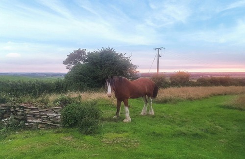 Charming, pet-friendly glamping cabin with stunning countryside views, a peaceful atmosphere, and incredible sunsets. Perfect for a digital detox and exploring nearby countryside, beaches and attractions.. 4 steps to entrance.
