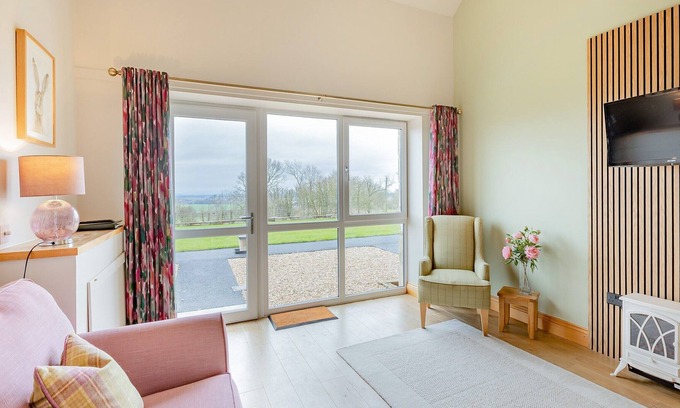 Bedroom: Zip And Link Super Kingsize (6ft) Bed Ensuite: Walk-In Shower, Toilet. Air source heat pump underfloor heating, electricity, bed linen, towels and Wi-Fi included. . Garden. Private parking for 2 cars. No smoking.. The Stable is situated in the beautiful peaceful countryside enjoying stunning views just 5 miles from the centre of St Andrews. Recently converted from an old barn, The Stable is one of six spacious and gorgeous properties. The Stable offers ground floor accommodation for two guests has a lovely lounge area and open plan kitchen and dining area. The bedroom offers a comfy super kingsize bed which can convert into two single and has quality bed lining and furnishings. It has a luxury en-suite bathroom, with a spacious walk-in shower and heated towel rail, as well as a de-mister mirror with shaving and electric toothbrush point. There is a large separate dining room with kitchen that can be hired for special occasions and large family gatherings.