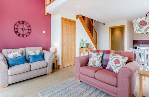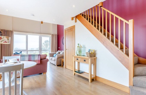Bedroom: Galleried, Zip And Link Super Kingsize (6ft) Bed. Air source heat pump underfloor heating, electricity, bed linen, towels and Wi-Fi included. . Private parking for 2 cars. No smoking.. The Granary is situated in the beautiful peaceful countryside enjoying stunning views just 5 miles from the centre of St Andrews. Recently converted from an old barn, The Granary is one of five spacious and gorgeous properties. Each property has its own private entrance and looks out over the far-reaching uninterrupted views over the Eden Estuary and beyond. Set within the grounds of Knockhill Farm, The Granary accommodates two guests and has a spacious open plan living space with a flatscreen TV. The luxury shower room is situated on the ground floor, with a spacious walk in shower, heated towel rail and demister mirror, shaving and electric toothbrush points and complimentary toiletries. The bedroom is located on the mezzanine level accessed by stairs, and the super kingsize bed can be changed into two singles on request. The Granary offers outstanding views over the rolling countryside. There is underfloor heating and free Wi-FI. A large separate dining room with kitchen can be hired for special occasions and large family gatherings.
