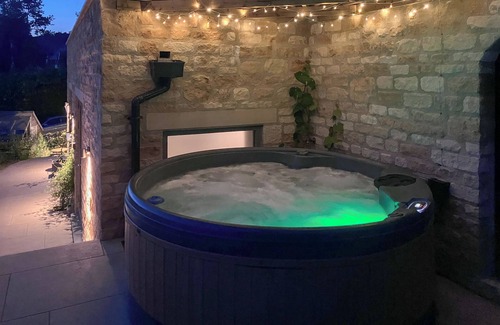 Your private luxury awaits in the solar-heated hot tub, where twinkling lights automatically illuminate at dusk, creating magical ambiance for stargazing and champagne moments under the Cotswolds sky. The Mediterranean-tiled bathroom and underfloor heating ensure comfort whatever the weather.