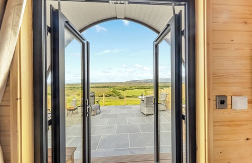 Bedroom: Double (4ft 6in) Bed Ensuite: Cubicle Shower, Heated Towel Rail, Toilet. LPG central heating, electricity, bed linen, towels and Wi-Fi included. Welcome pack. Patio area with sunken copper bath and firepit/barbecue. Private parking for 2 cars. No smoking. Please note: No children.. Welcome to your dream romantic getaway in the Dyfi holiday pod nestled in the heart of the welsh countryside , perched on the edge of the Dyfi Nature Reserve boasting stunning far reaching views out over Cardigan bay, this intimate retreat is designed to provide you and your loved one with a perfect escape surrounded by nature’s beauty nestled in a quiet corner on the edge of a working sheep and livery farm while offering a unique blend of comfort and romance.