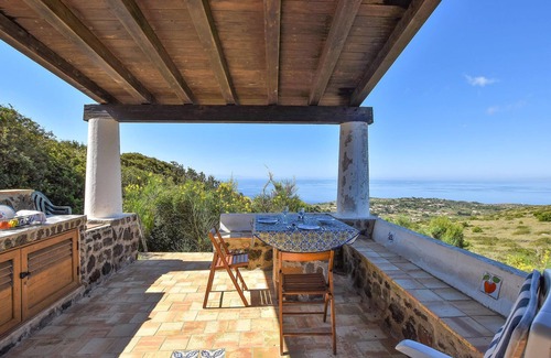 The small stone house welcomes you dream location on Ustica, a paradise for divers and snorkeling enthusiasts. Back to nature is the motto here in an elevated position in the forests of the small island. The functional equipment and homely furnishings make it the ideal place for a relaxing getaway. After an active day in nature, sleep wonderfully under heavy wooden ceiling beams. Spend as much time as possible outdoors, on the terrace you can fully enjoy the magnificent panorama. Let your eyes wander over the Mediterranean Sea while having your morning coffee, take a siesta in front of the picturesque scenery and enjoy the balmy summer evenings with a glass of wine under the open sky. The off-road vehicle you need to reach the house is provided.