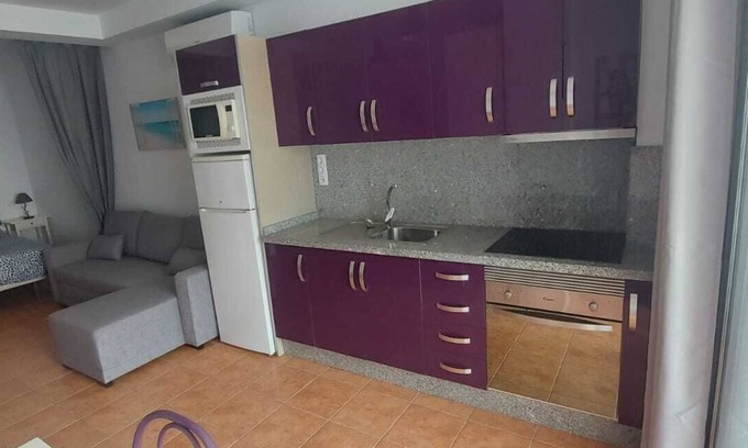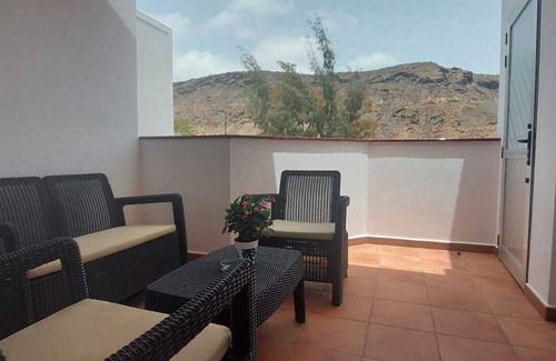Cosy, fully equipped studio apartment in Mogan beach. Minutes walk from the beach, port, shops, bars and restaurants. Free car park space is available across the road from the building. Gets plenty of morning sun with beautiful mountain views.