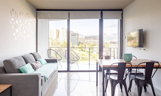 This cozy one-bedroom apartment is situated in the heart of the city and boasts a spacious balcony with breathtaking views of the Beagle Channel from both the living room and the bedroom. The fully equipped kitchen allows for convenient meal preparation, while the living room offers a comfortable double sofa bed for extra guests. The master bedroom includes a cozy double bed, and the modern, full bathroom provides all the essentials for a relaxing stay. Ideal for couples, this centrally located apartment offers a serene escape with stunning sea views from every room, combining urban convenience with natural beauty.