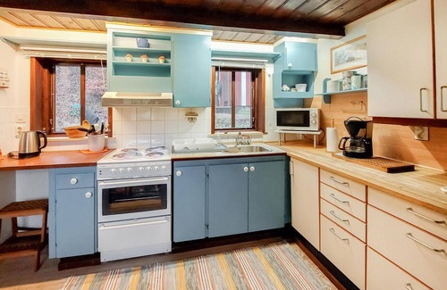 In an idyllic location, close to forest and beautiful hiking trails, this vacation home welcomes you, an ideal starting point for a vacation in nature. The accommodation offers homely furnishings and is therefore ideal for families with children. You will feel right at home here, surrounded by beautiful nature, and can spend time together enjoying good food, playing cards and feasting on cake. The large garden is fenced so that you can let your four-legged friend run free without any problems.
