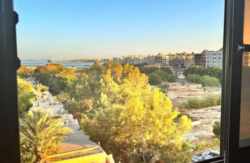 Stunning Red With Side Sea view, sun rises on bedroom/balcony side. Restaurant, cafe, bar, Arabian tent inside and outside resort. Restaurants, cafes, bars, bakeries and shops walking distance outside resort. Oven, dishwasher.