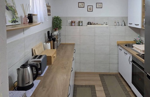 Everything you need for a carefree holiday is available in this practical apartment - compact, well thought out and designed with your well-being in mind. The bright living area invites you to arrive and take a deep breath, and you can conjure up delicious meals in the kitchen. Whether you want to spend a cosy evening watching TV or listening to music, here you set the pace of your day.