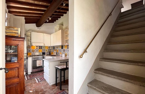 Arrive and enjoy as a couple or with your small family this cozy house on two floors from the 1500s. On the first floor you will find modernized and inviting rooms, the best conditions to spend your time cooking, eating and relaxing. You can reach the upper floor via a steep staircase, where you can enjoy a good night's sleep and let your gaze wander over the rooftops of the historic center.