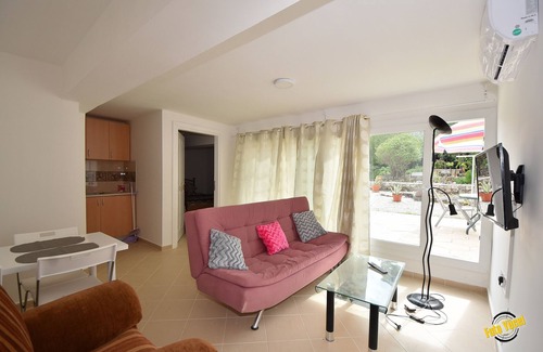 1 Bedroom fully furnished apartment, which can accommodate 2 people. Towels and bed linen are provided. The aprtment have one bathroom with hot shower and bathroom necessities