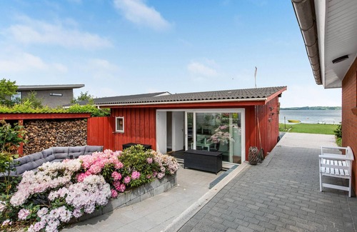 Come to this lovely house in a unique location directly on the Aabenraa Fjord. You are in the last row of houses before the shore and can enjoy a beautiful view of the water all day. In the backyard you will find a sheltered terrace where you can sunbathe undisturbed. The interiors are nicely and comfortably furnished, so you can feel right at home. However, the highlight of this house is the private garden and access to the water. So you don't need to go far to enjoy the beautiful nature and water. Use the fireplace for sociable barbecue evenings and the long jetty to make tours by boat or paddle from here. Swim a few refreshing laps first thing in the morning before starting your day or splash your toes in the sea comfortably in the evening.