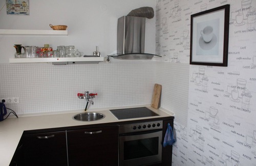 Fitted kitchen with ceramic hob with oven, refrigerator, and much more.
