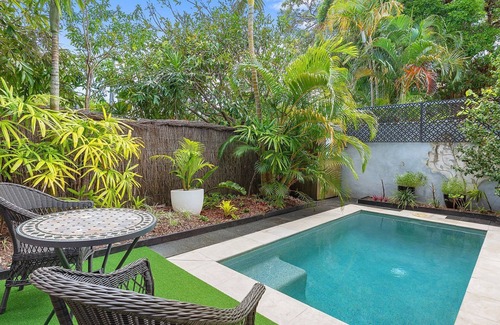 Venture out to the private courtyard and be greeted by our glistening private use pool. It's the perfect spot to relish sun-soaked Queensland afternoons, perhaps with a book in hand or refreshing beverage. The outdoor entertaining area also doubles as a dining setting – ideal for balmy evening meals out on the deck.