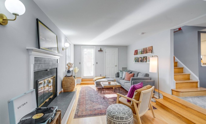 Museums and historic sites are right outside your door at this Alexandria, VA, vacation rental. With a central location in the heart of Old Town and King Street within walking distance, this 2-bedroom, 1.5-bathroom home is your gateway to the nation’s capital. You’ll find plenty to do on-site as well, whether you’re getting some work done at the WFH desk, listening to a record from the provided collection, or relaxing under the trees on the patio with your furry friend.