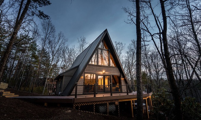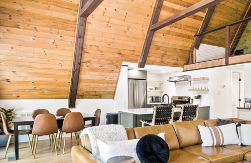 Adventure and escape into the mountains with your very own private retreat. We have restored this 1970's A-Frame Cabin from top to bottom. Everything is brand new including an all new wrap around deck with dining table with seating for the whole group, fire pit, hot tub, and loft area designed to help you relax and unwind.